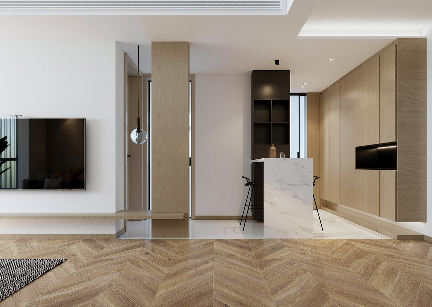 本案特點:整體空間以奶油色系為基調(diào),佐以多元材質(zhì)與紋理堆疊出層次,制成甜而不膩的居家質(zhì)感,