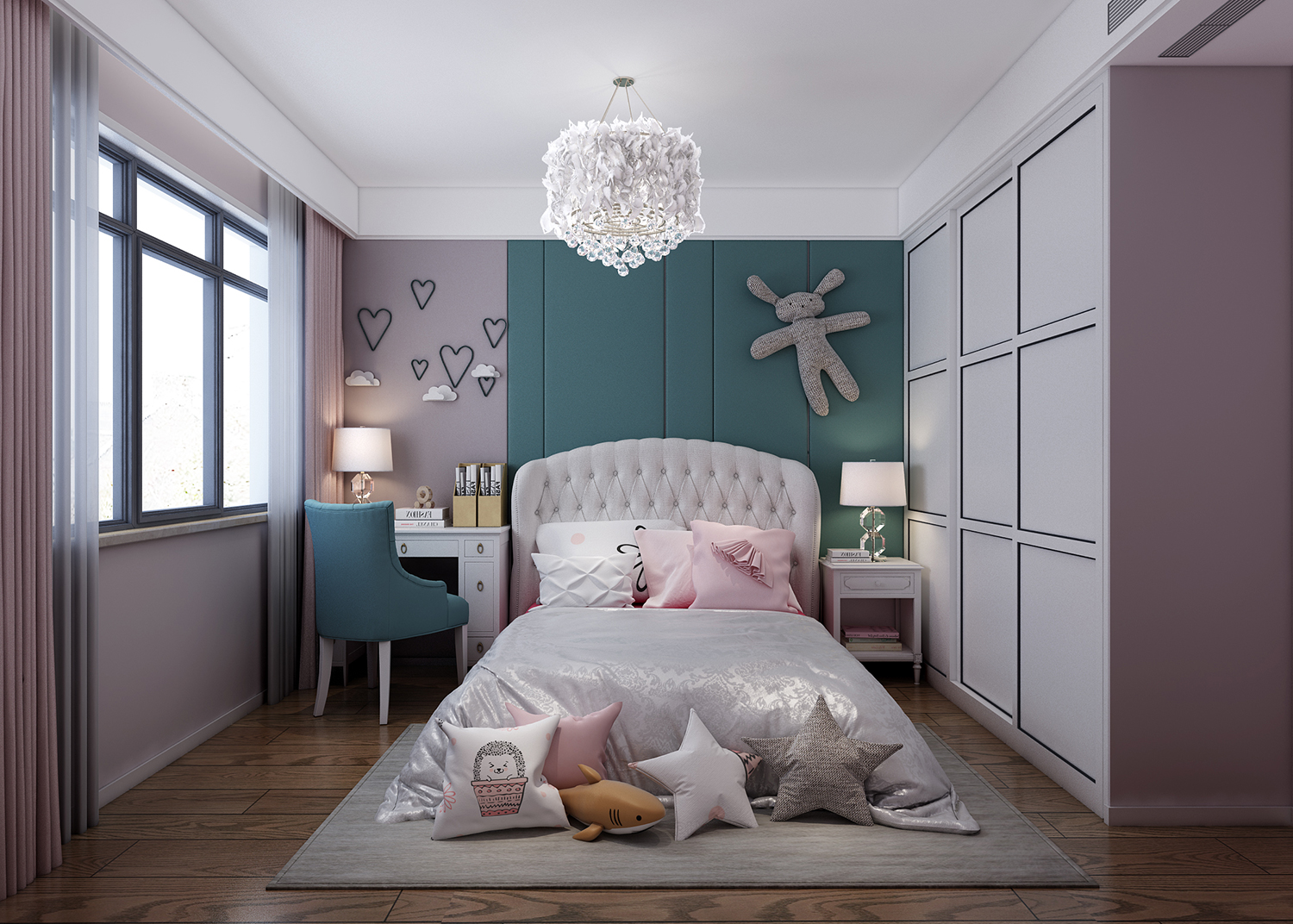 在顏色與配飾上,做到視覺的放大??蛷d矩形與圓形輪廓形成空間的旋律。