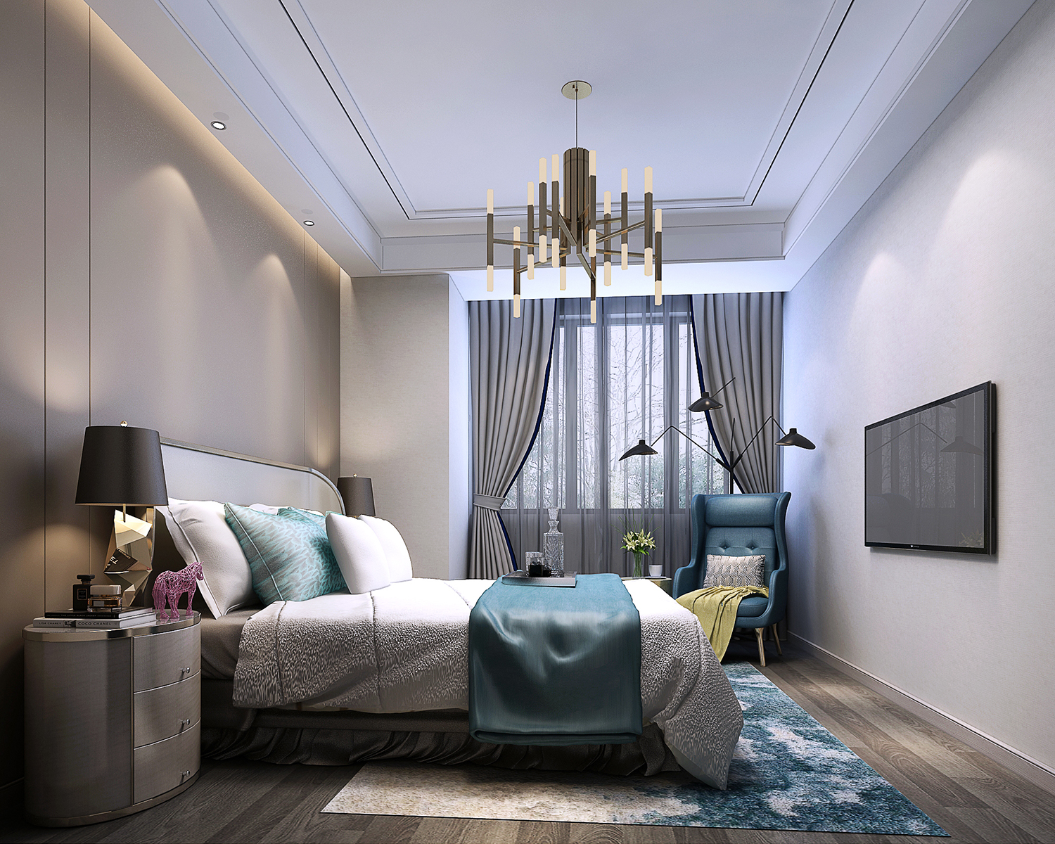 設(shè)計理念:本案例業(yè)主夫婦三十多歲,喜歡極簡北歐風,整個空間干凈整潔,煙青灰感覺,使得空間感落落大方