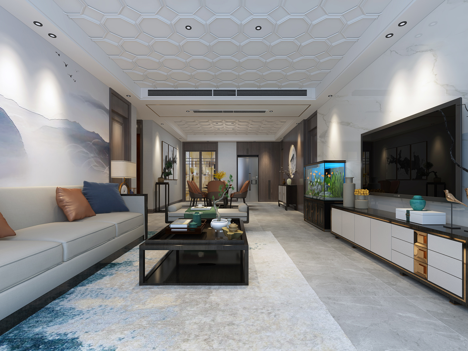 設計理念:業(yè)主對空間規(guī)劃要求比較高,重點針對空間劃分進行了多重優(yōu)化,沒有固化的風格命題,混搭風格涵蓋了中式,現代,輕奢等元素。
