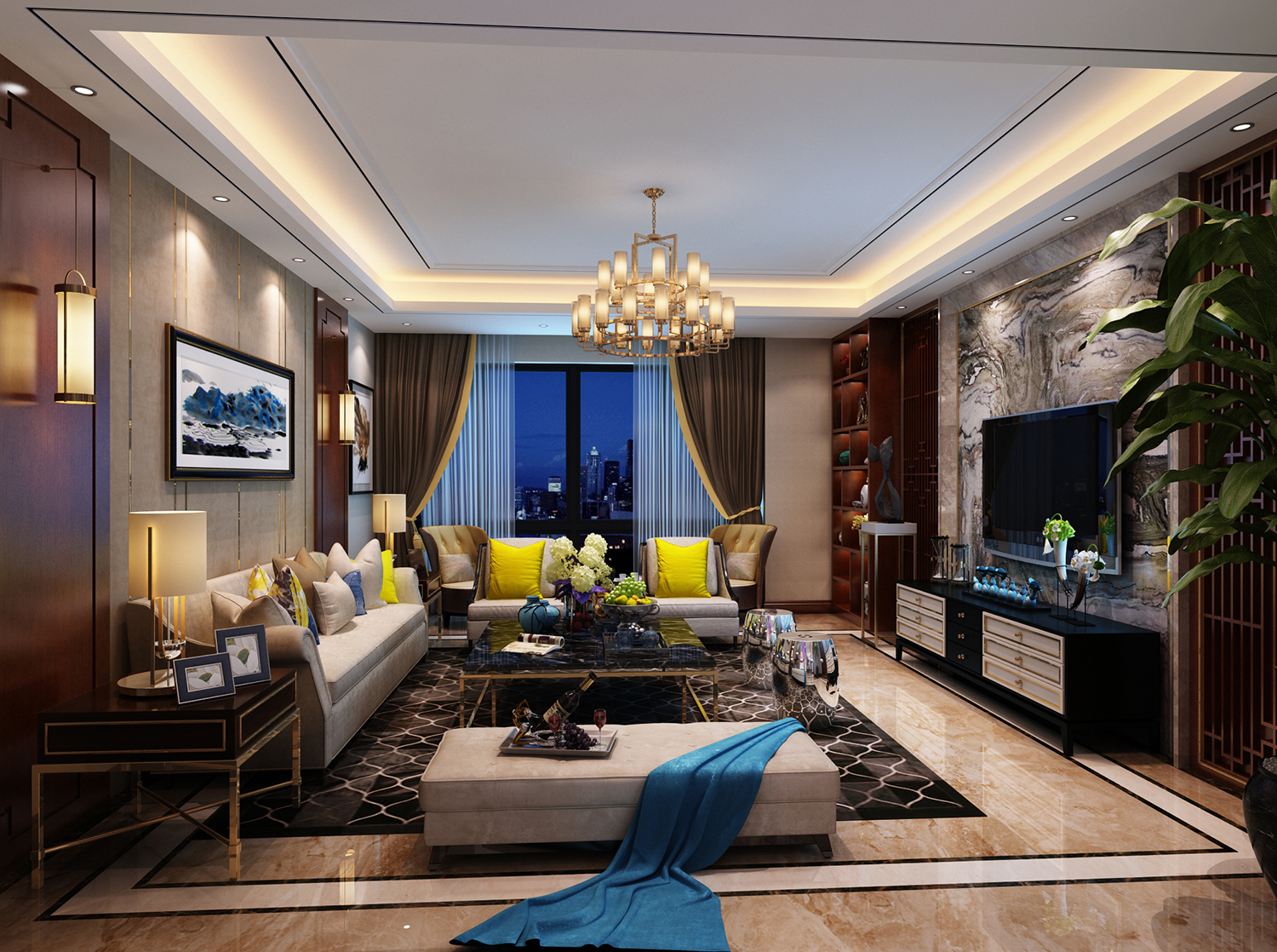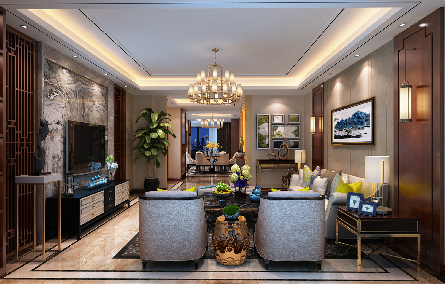 設(shè)計(jì)理念:此套方案主要設(shè)計(jì)理念是古典中式和現(xiàn)代元素的激情碰撞,衍生出格調(diào)高雅 簡(jiǎn)約大氣的新中式框架。它立足于傳統(tǒng),又施之于創(chuàng)新,經(jīng)過(guò)提煉和豐富后呈現(xiàn)出濃郁的東方情調(diào)??蛷d吊頂穩(wěn)重大氣,吊頂油層次風(fēng)格和整體統(tǒng)一,整體風(fēng)格以大氣內(nèi)斂 設(shè)計(jì)注重造型比例和對(duì)景 軟裝和硬裝之間強(qiáng)調(diào)平衡。標(biāo)志性的穩(wěn)重色調(diào) 大氣 富于質(zhì)感。仿石材大磚紋理富于變化而有層次。入戶玄關(guān)背景砂巖雕刻而成,與自然融為一體,給人以質(zhì)感和歷史的溫度。