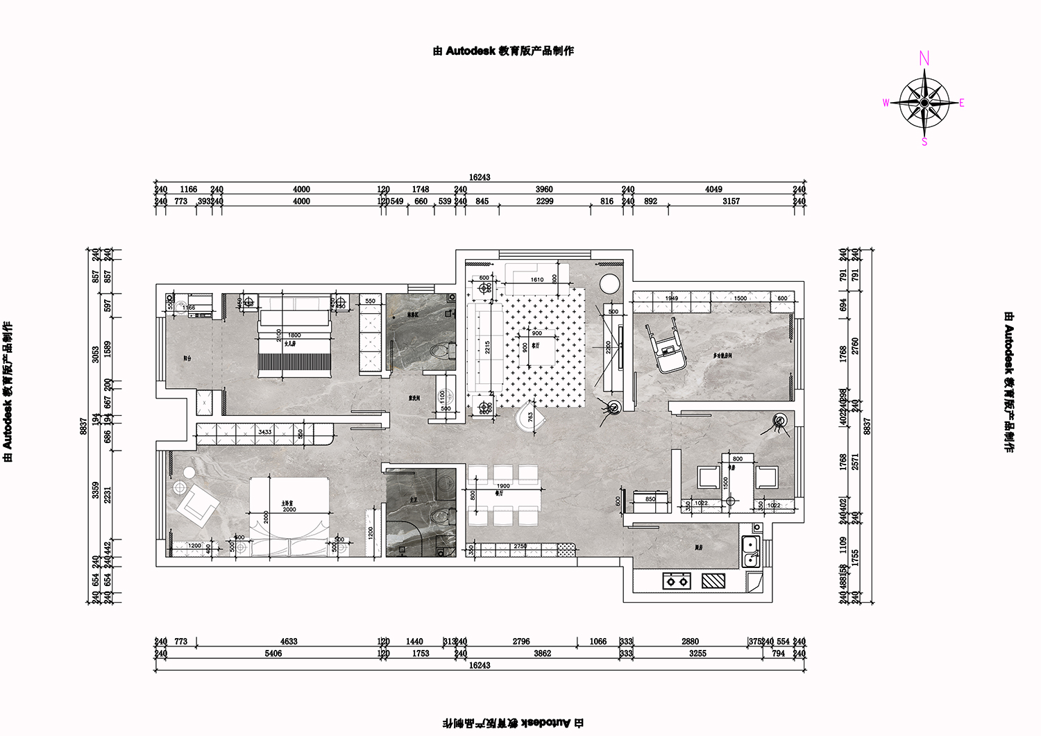 設(shè)計理念:本案例業(yè)主四十多歲比較深沉的事業(yè)成功人士,整個空間色調(diào)沉穩(wěn),適當(dāng)?shù)靥砑右恍┹p奢元素,使得空間感活躍不呆板