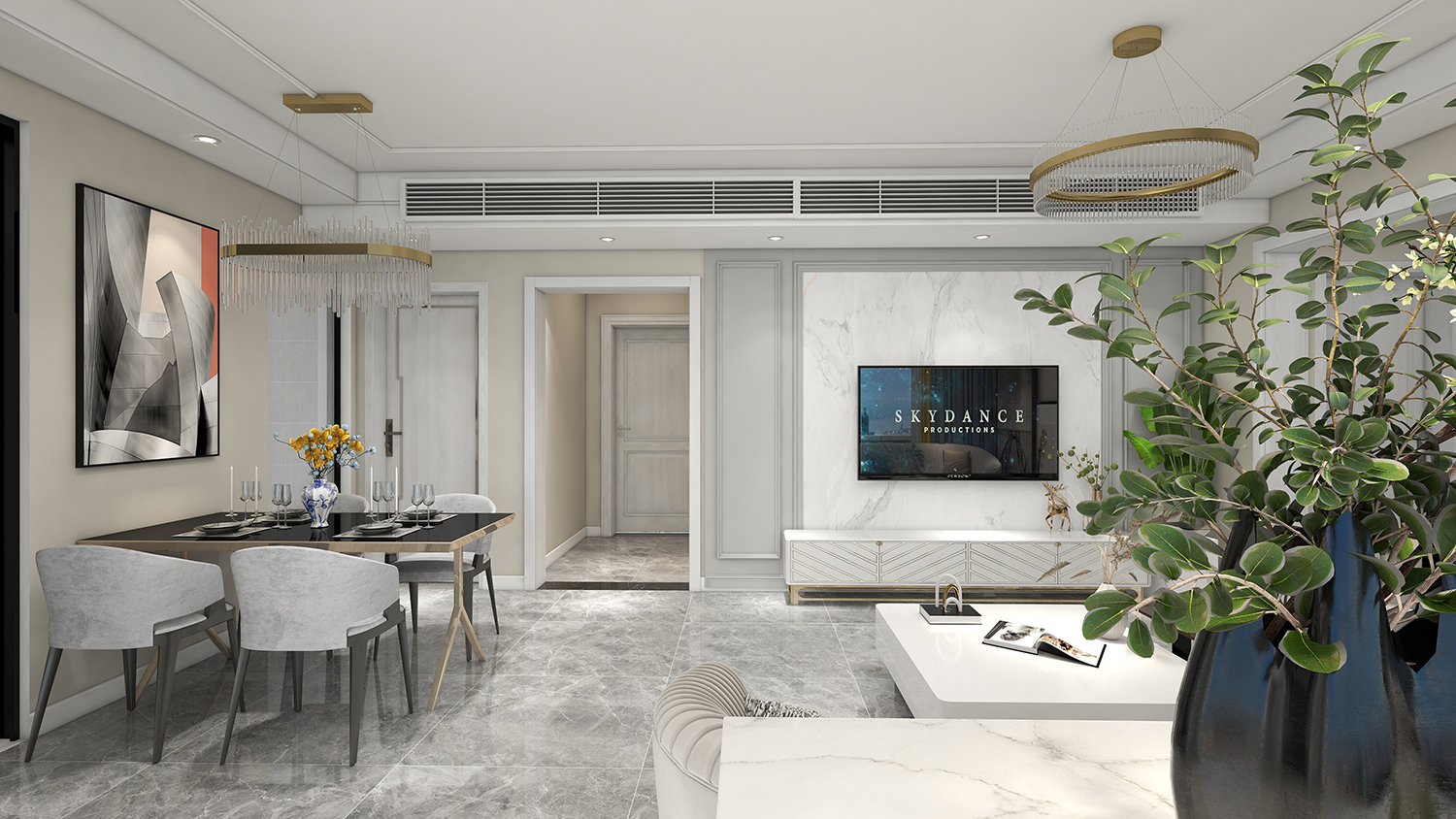 綠城明月江南140㎡三居室意式輕奢風格裝修效果圖