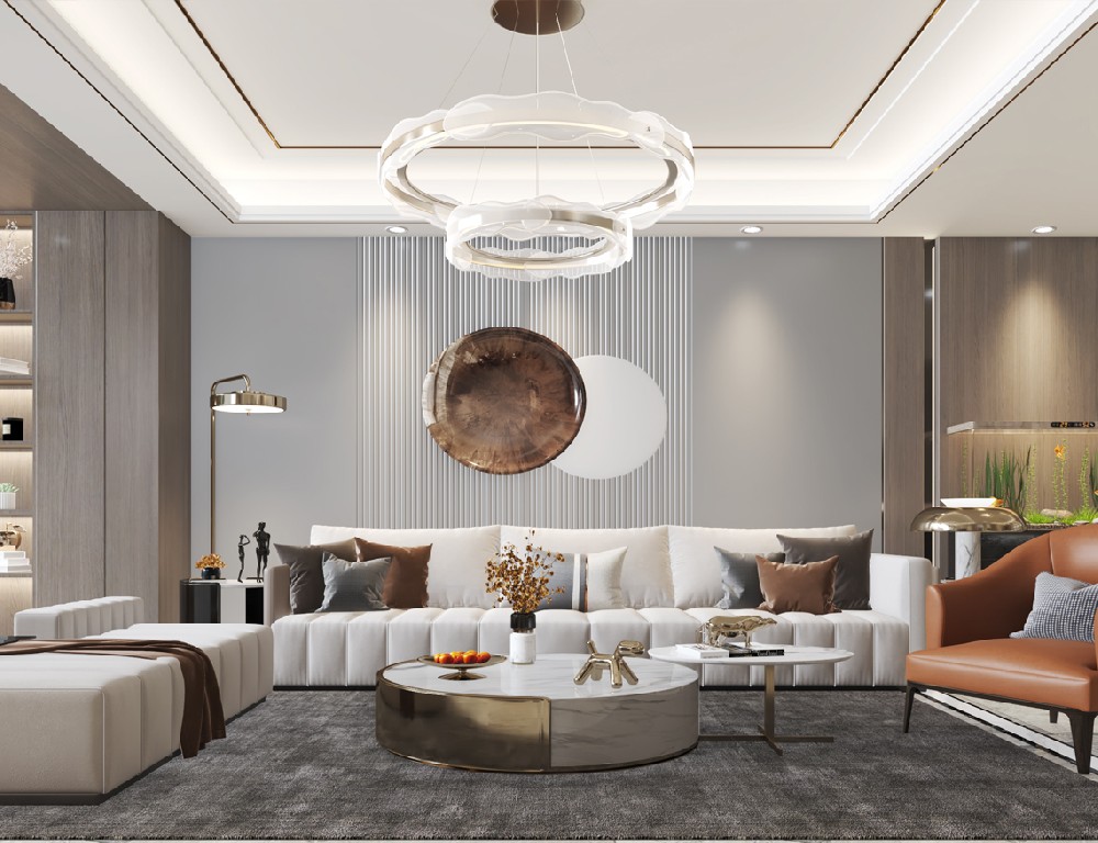 本案特點:整個色調(diào)沉穩(wěn)加上暖色的燈光,局部搭配金屬色,有一種現(xiàn)代時尚的格調(diào)在里面,金屬與質(zhì)感的碰撞,給人一種很溫馨的感覺。