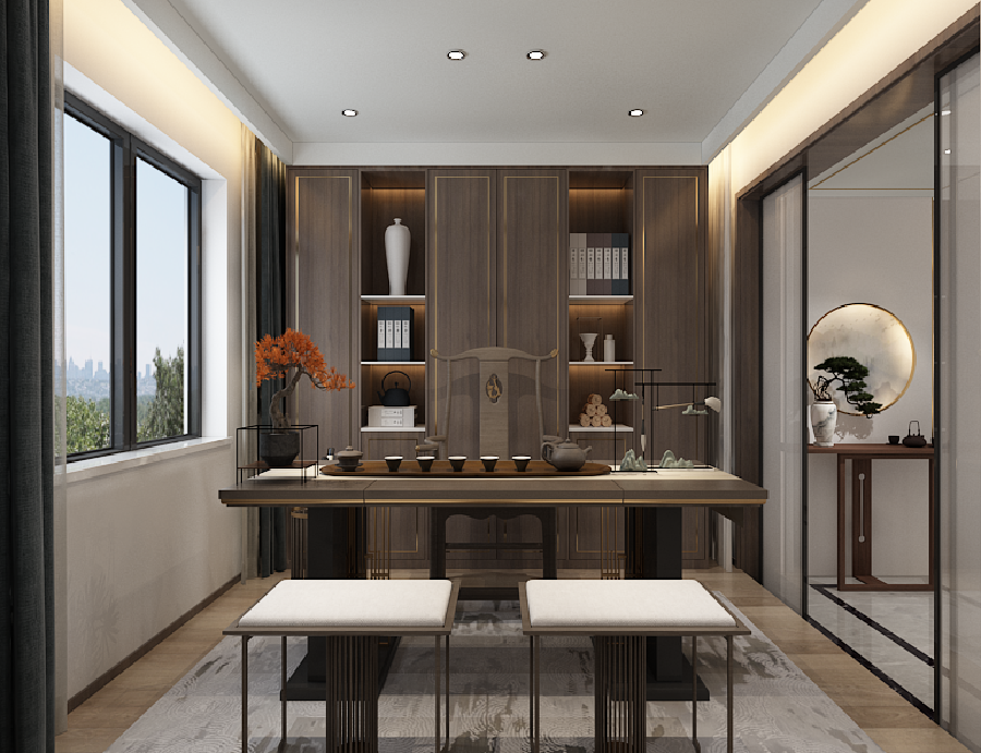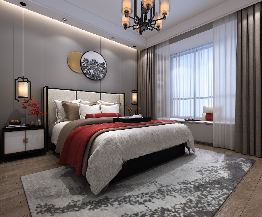 鄭地璞園135㎡三居室新中式裝修效果圖