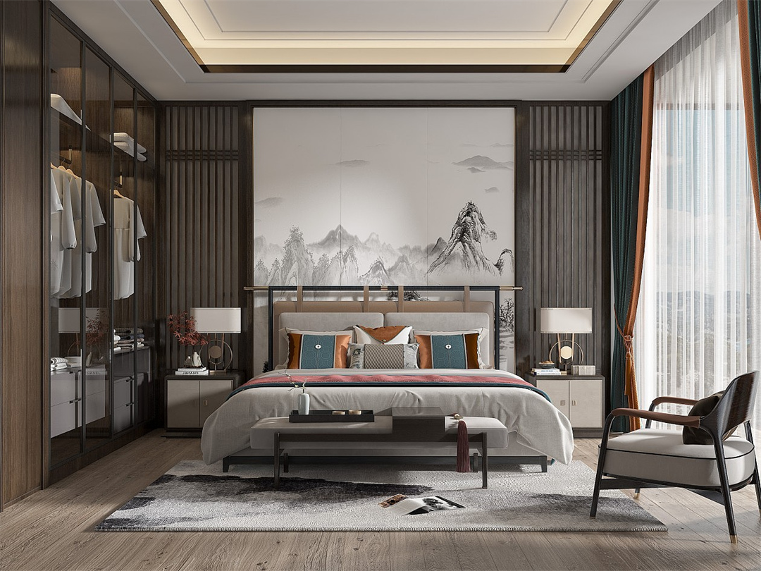 取自然的色調(diào)與質(zhì)感,寬闊的雙人床,層次錯(cuò)落的床頭背景墻、精致實(shí)用的透明衣柜,彰顯出對(duì)細(xì)節(jié)的完美把控。