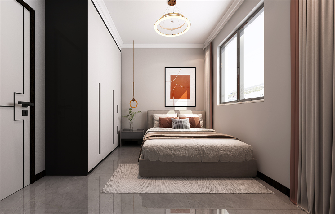 次臥靠墻定制一組衣柜,滿足儲物需求。