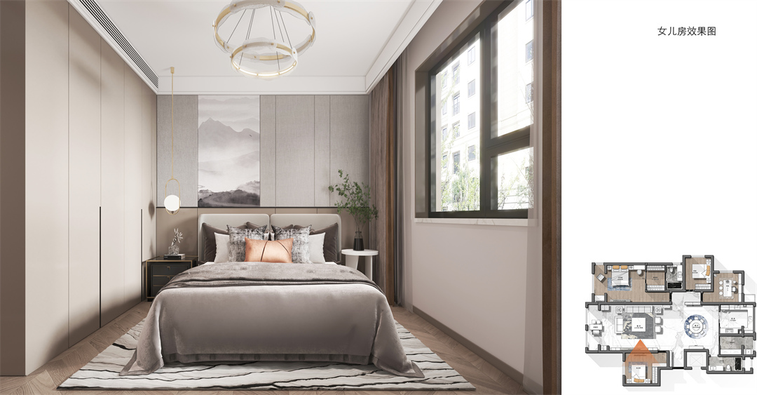 次臥以灰色為主,設(shè)計手法傾向于現(xiàn)代,簡單意會空間,以舒適和功能并行。