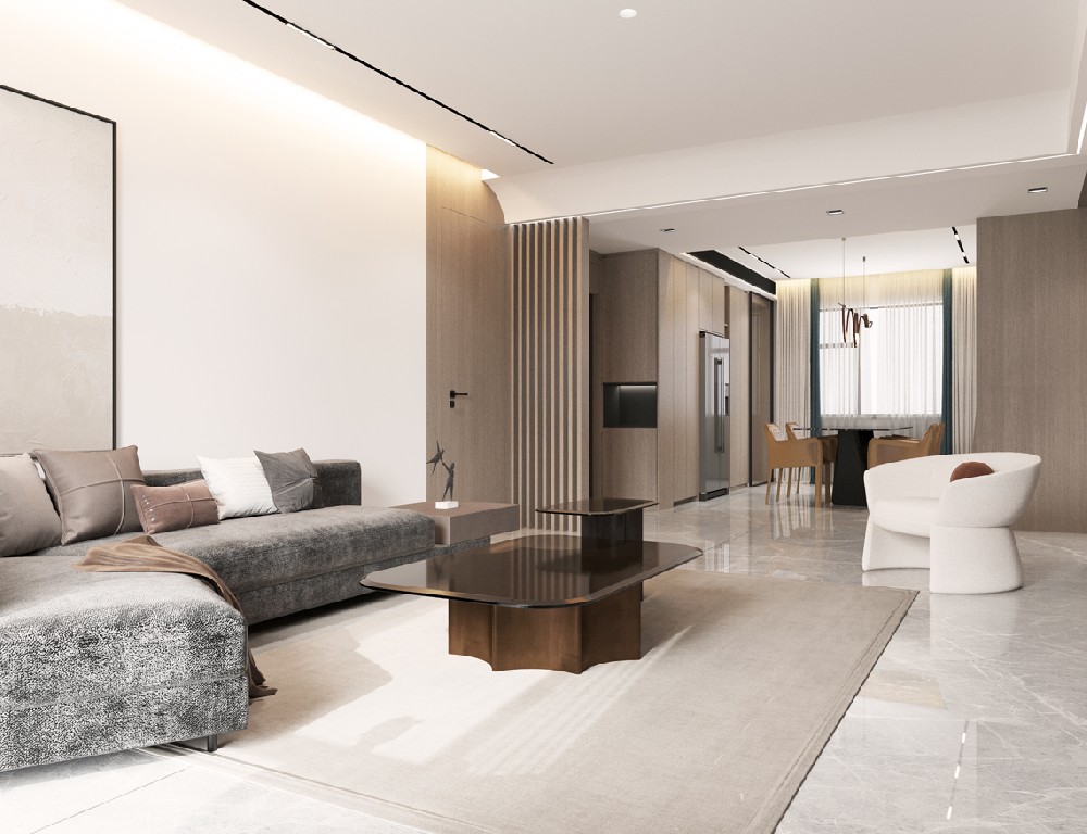 客餐廳整個(gè)空間給人帶來一種輕奢優(yōu)雅的視覺感官,懸浮吊頂?shù)脑O(shè)計(jì)以及每個(gè)細(xì)節(jié)的展示,更是藝術(shù)的表現(xiàn),在每一個(gè)空間里都能讓人感受到驚喜。