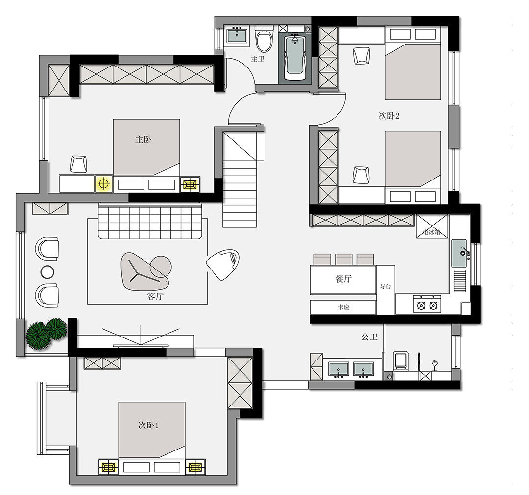 金水灣200㎡現(xiàn)代法式風格二樓布局方案