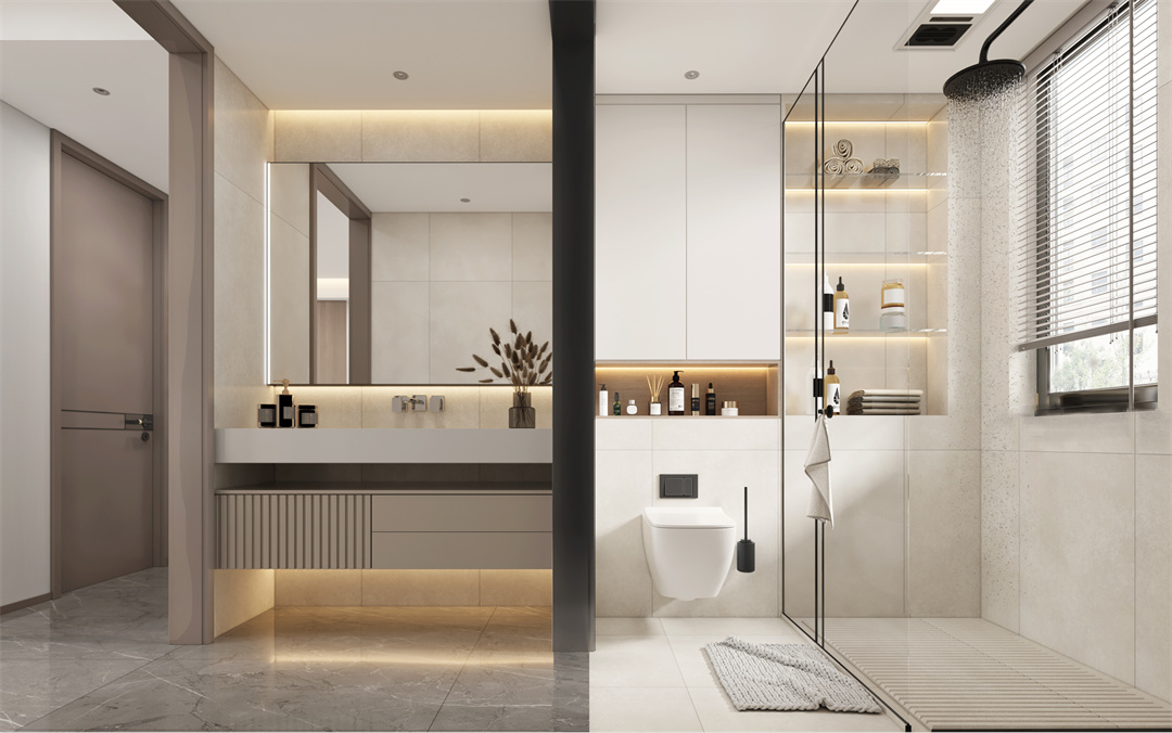 衛(wèi)生間干濕三分離,玻璃隔斷,更顯敞亮大氣。