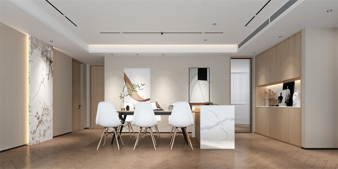餐廳與客廳相連通,開放式的空間,用餐也能時(shí)刻感受周圍鋪灑的陽光,中島吧臺設(shè)計(jì)前衛(wèi)時(shí)尚,已成為時(shí)下年輕人追捧的元素之一。