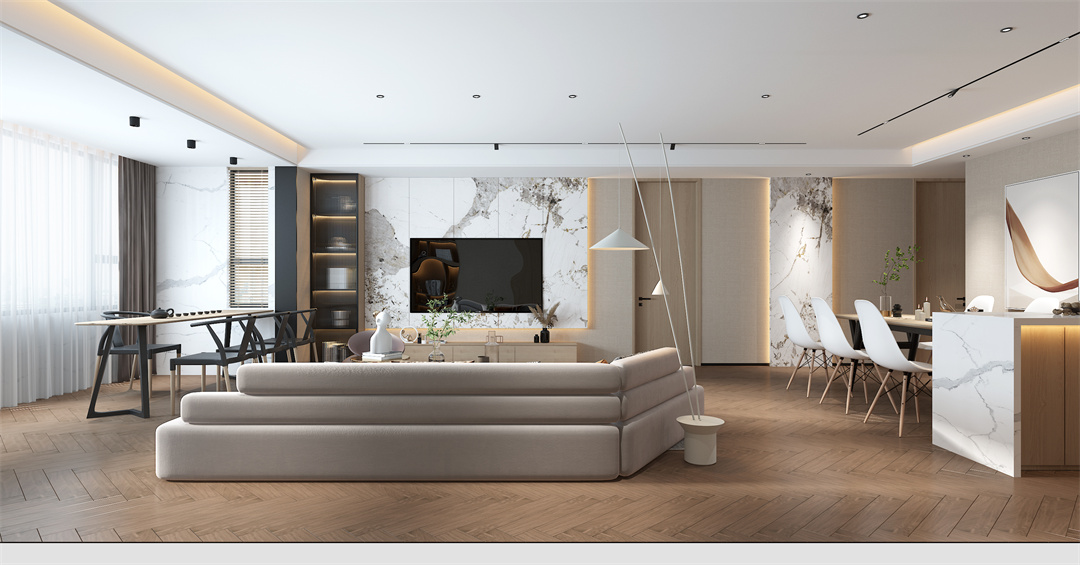客廳空間主要選用了木紋地磚,簡樸的紋理讓空間有了深層的質(zhì)感。搭配精致的家具、利落的線條,開闊的空間為整個(gè)設(shè)計(jì)帶來了極致舒適的感覺,除了要滿足正常的生活需求外,也要對藝術(shù)的審美得到展現(xiàn)。
