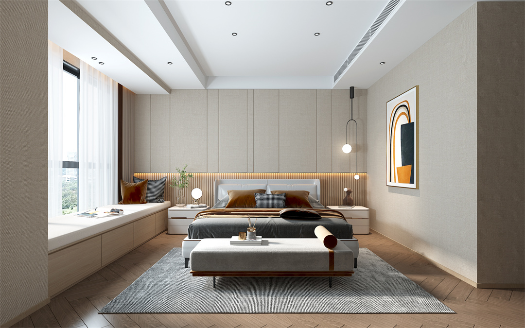 臥室,永遠(yuǎn)是身體和靈魂最舒適放松的場所。舒適、自由、實(shí)用而又不擁擠是戶主最大的要求。