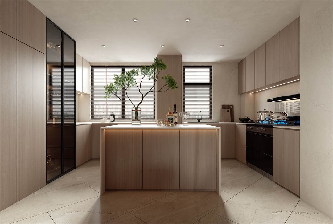 島臺(tái)的設(shè)計(jì)緩解了原本廚房一字型櫥柜的壓力,實(shí)現(xiàn)雙“U”型動(dòng)線,也讓原本多余的過道空間減少存在感。