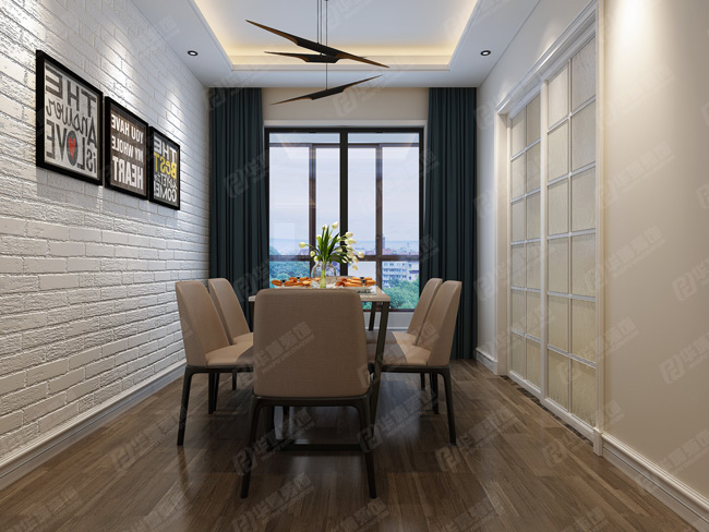 餐廳,滿墻的文化磚在訴說(shuō)著頗有年代感的故事,像在鏡子里,像在時(shí)間外,靜靜流淌。在空間陳設(shè)上,業(yè)主還是比較注重現(xiàn)代質(zhì)感的,要簡(jiǎn)單溫馨,不乏時(shí)尚。