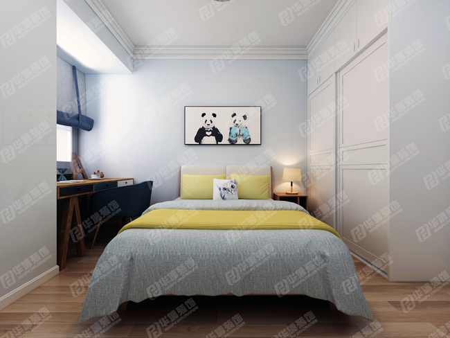 兒童房一股清流襲來,藍(lán)灰的調(diào)調(diào),給人很放松、很舒適的感覺。