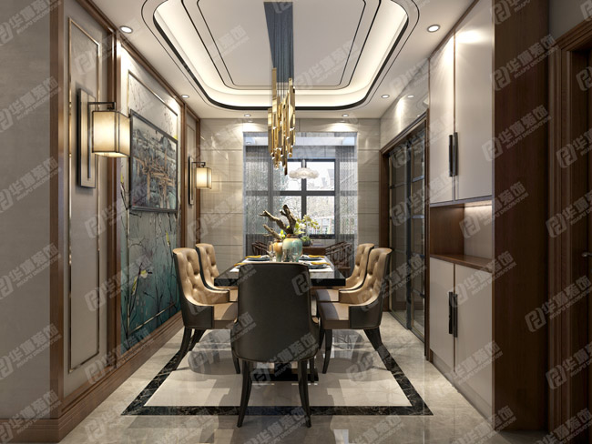 金沙湖高爾夫官邸145平新中式風(fēng)格餐廳裝修效果圖