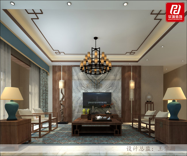 新田城320平別墅中式風(fēng)格客廳裝修效果圖