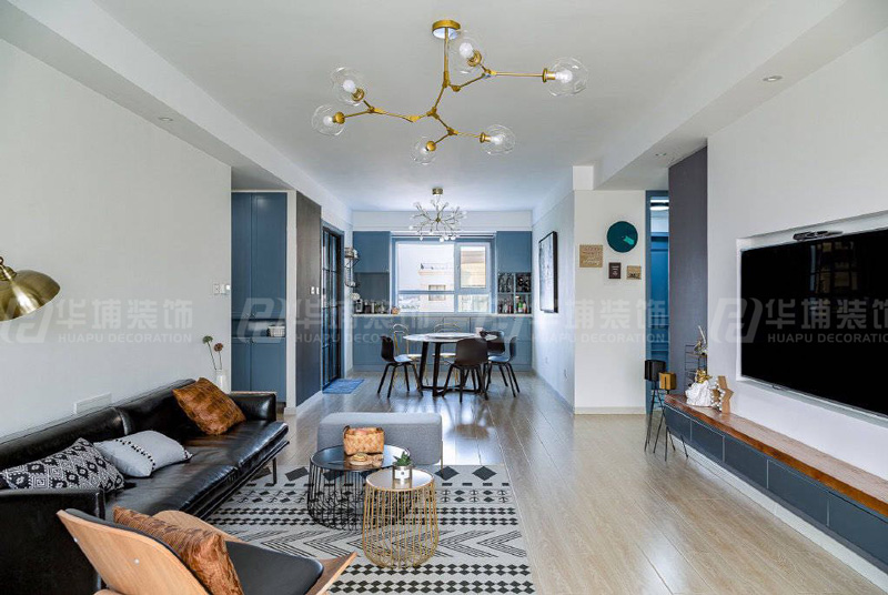 設(shè)計理念:此案例屬于小戶型,室內(nèi)面積相對有限,所以客餐廳的設(shè)計選擇使用軟裝區(qū)分,中間不做任何的隔斷,可以保證整個空間的通透性,在視覺上起到延伸的效果