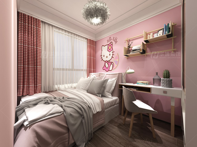 電視墻采用嵌入式電視柜的設(shè)計(jì),將電視柜和書房的隱形門作為一體,方便實(shí)用。