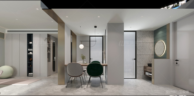 本案特點(diǎn):開放式的大廳設(shè)計(jì)給人以通透之感,避免視覺給人帶來的壓迫感,可緩解業(yè)主工作一天的疲憊。沒有夸張,不顯浮華,透過過于干干凈凈的設(shè)計(jì)手法,將業(yè)主的工作空間巧妙地融入到生活空間中。