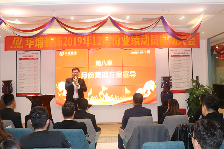 2019年12月4日下午,華埔裝飾十一月份業(yè)績(jī)表彰、十二月份動(dòng)員大會(huì)在華埔裝飾(航海路旗艦店)三樓會(huì)議大廳舉行。華埔裝飾董事長(zhǎng)張革命提出,服務(wù)和客戶滿意度依然是我們今后工作的重中之重,我們要用心維護(hù)客戶,用產(chǎn)品和服務(wù)打動(dòng)客戶,把客戶當(dāng)作最親密的朋友對(duì)待。臨近年底,希望各位同事們要給自己樹立好目標(biāo),有志者才能事竟成,用自己的成績(jī)回饋家人,給自己的2019年交一份滿意的答卷。