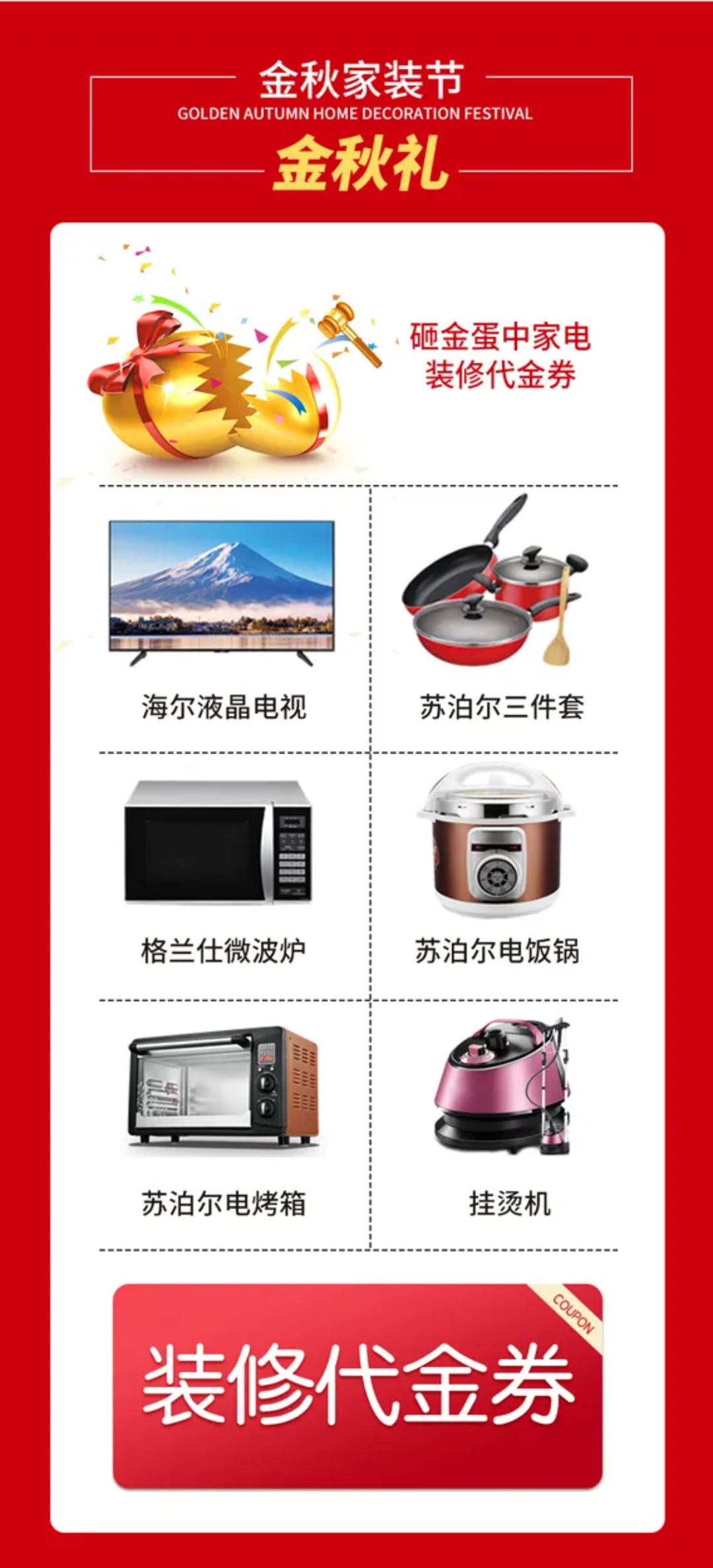 9月20日金秋特別禮,幸運(yùn)砸金蛋,贏電視機(jī)、裝修代金券等大禮。