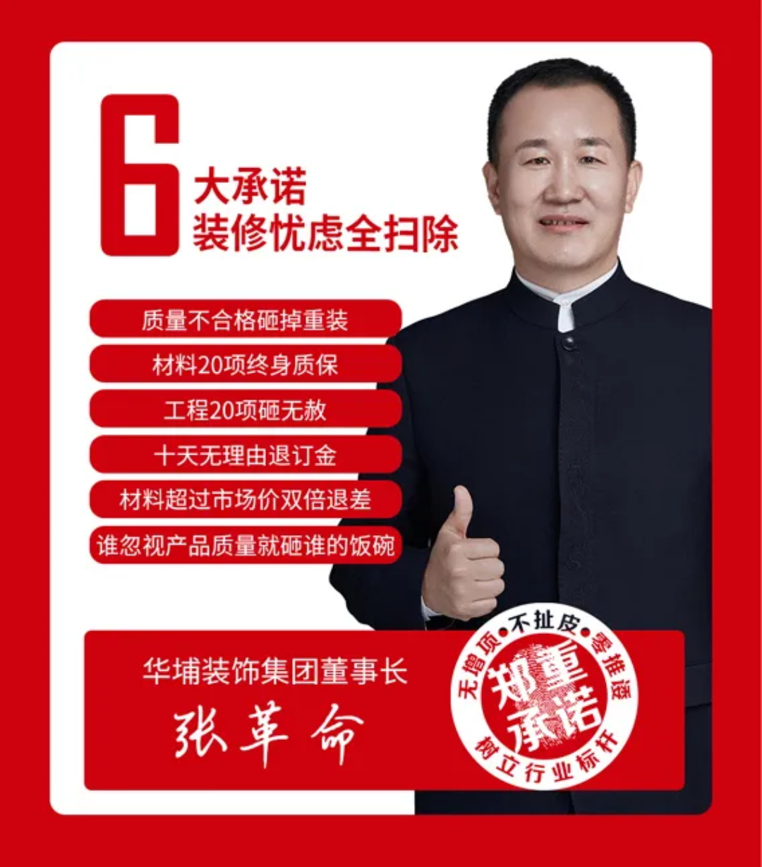 華埔裝飾更有六大免費(fèi)服務(wù),總經(jīng)理親自點(diǎn)派“金牌項目經(jīng)理”,工地攝像頭實時查看施工進(jìn)展,“一起裝”全民監(jiān)工、《金牌樣板間協(xié)議》等品質(zhì)服務(wù)。
