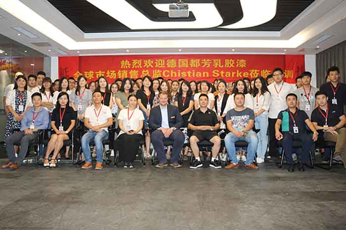 • 為增強(qiáng)合作共贏,讓設(shè)計專家充分了解德國“都芳”漆,更好的服務(wù)客戶,華埔裝飾特邀請德國“都芳”漆全球市場銷售總監(jiān)Chistian Starke(克里斯汀·施達(dá)克),對華埔裝飾所有設(shè)計專家進(jìn)行產(chǎn)品培訓(xùn)以及涂料行業(yè)技術(shù)交流。
