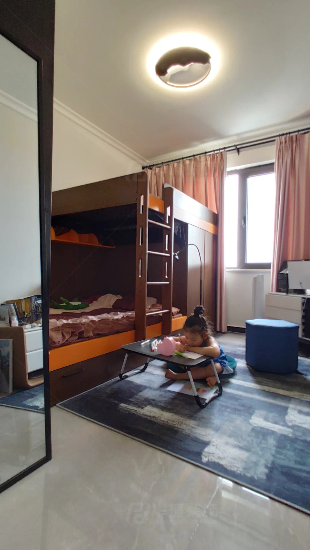 兒童房個性、時尚,臟粉與肉粉的墻漆劃分,上下鋪的合體設(shè)計,不同需求的衣柜,讓整個空間大放異彩。當(dāng)小朋友席地作畫,以兒童房做景,這畫面好溫馨!