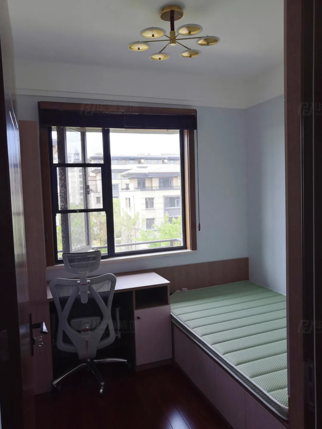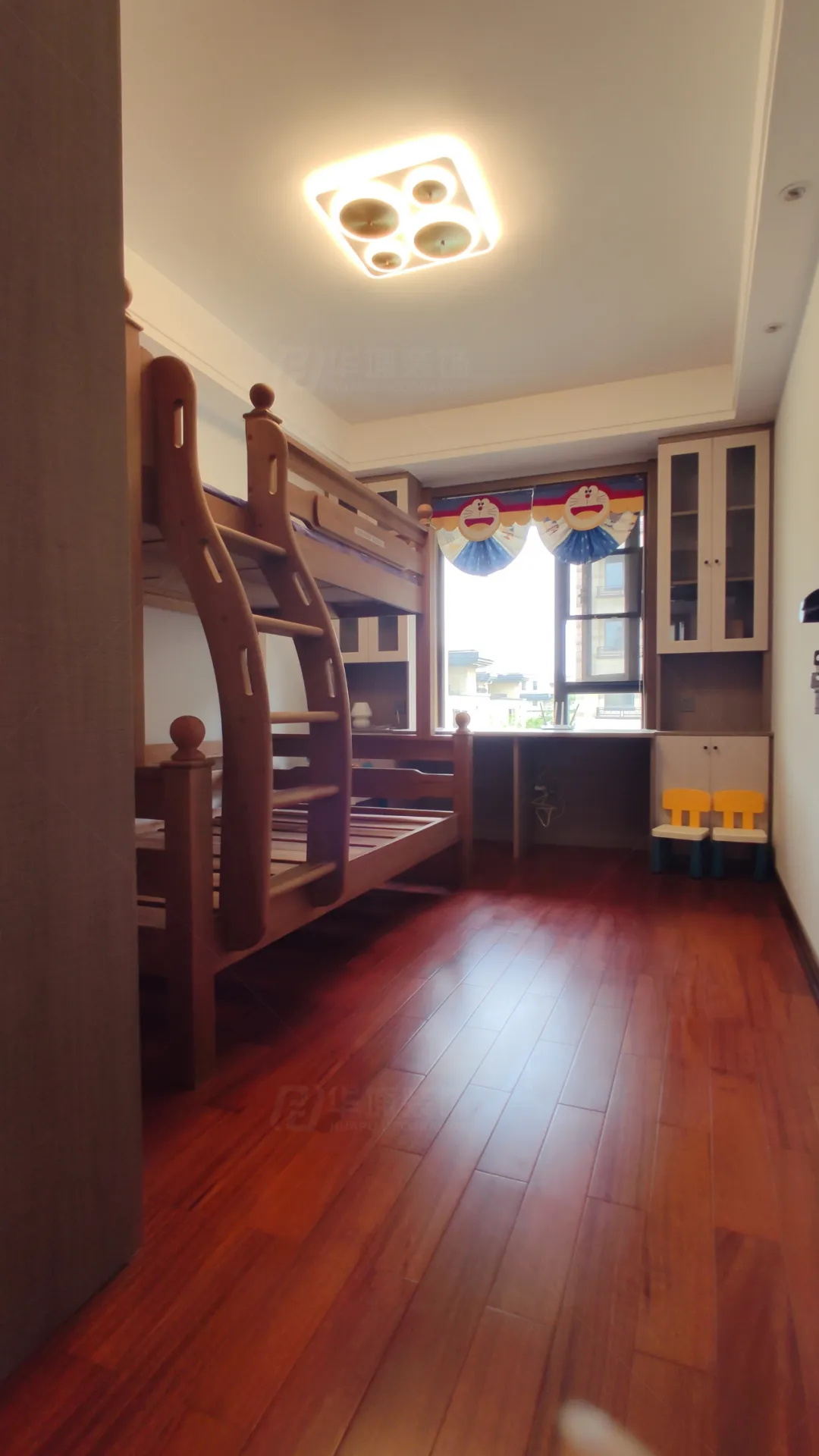 因?yàn)榧依锸莾蓚€(gè)小孩,所以做了上下鋪的設(shè)計(jì),方便照顧,增進(jìn)陪伴。靠窗設(shè)計(jì)了書桌臺(tái)和書柜,注意是分體設(shè)計(jì),可以做到小朋友不爭搶、不打擾。