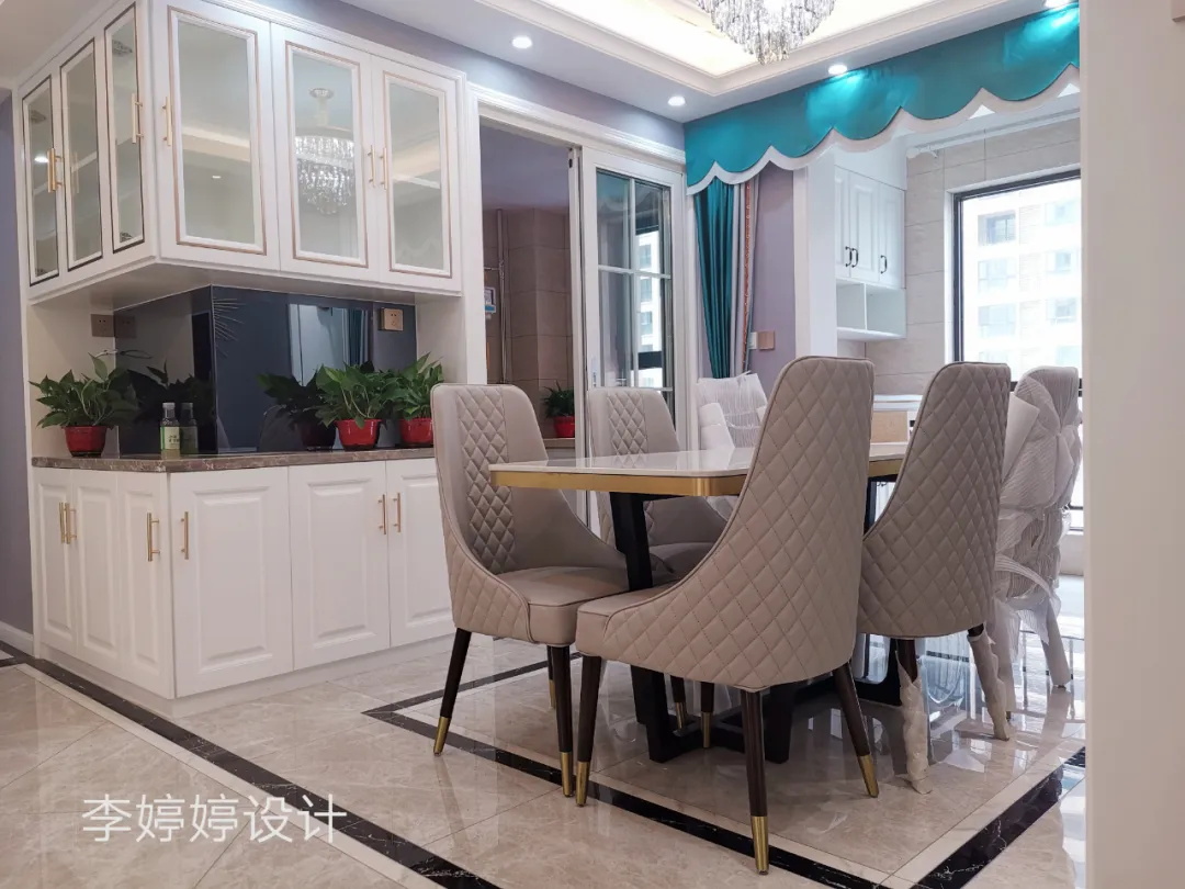 “妹子,我負(fù)責(zé)出錢,你來做效果!”在做了兩次溝通之后,趙先生就選擇了信任與交付。因為趙先生經(jīng)商,所以平時也沒有太多的精力著手裝修事宜,基本都是愛人薛女士與設(shè)計師做溝通。在整個裝修過程中,薛姐對婷婷老師也是充分信任,尤其后期的軟裝搭配,每一個細(xì)節(jié)都會和設(shè)計師商量,聽取建議。包括床頭靠背的材質(zhì)、餐椅的款式、掛畫的高度、窗簾抱枕的色澤紋理等等......正是這些小細(xì)節(jié)的打磨,才有了這套輕歐式作品的落地。精工細(xì)品,踐行承諾!