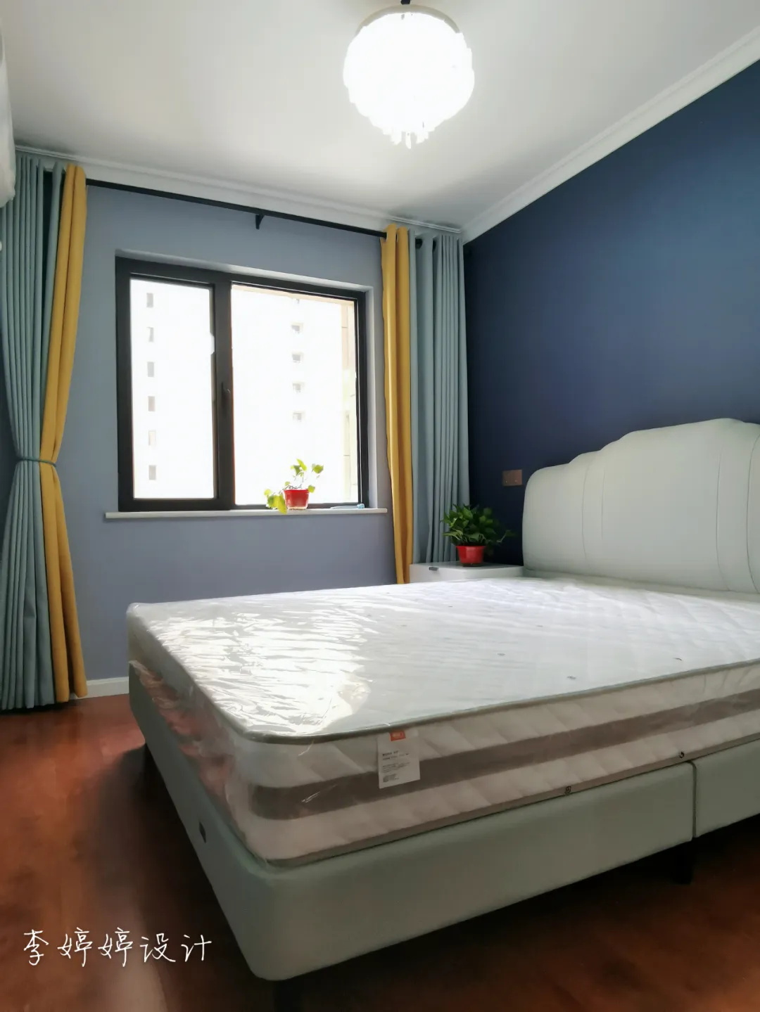 臥室是休息的場所,主要以簡素為主,再通過軟裝色彩的跳躍,來增加空間的對比度。