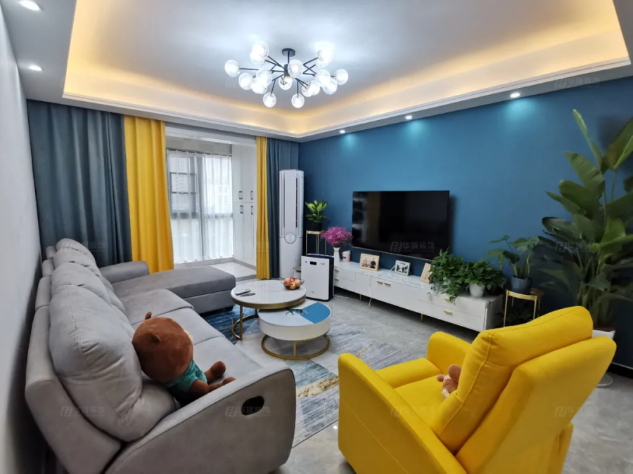 本案是小夫妻婚房,業(yè)主喜歡撞色設(shè)計,整個空間都洋溢著青春的活力,有強烈的視覺沖擊感,很跳脫,也很灑落。