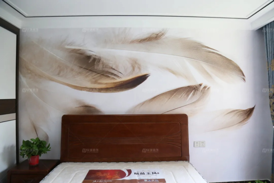 很喜歡主臥的背景墻,飄零的羽毛,隨風逸動,是愛情的美好,恰似我要的溫柔。