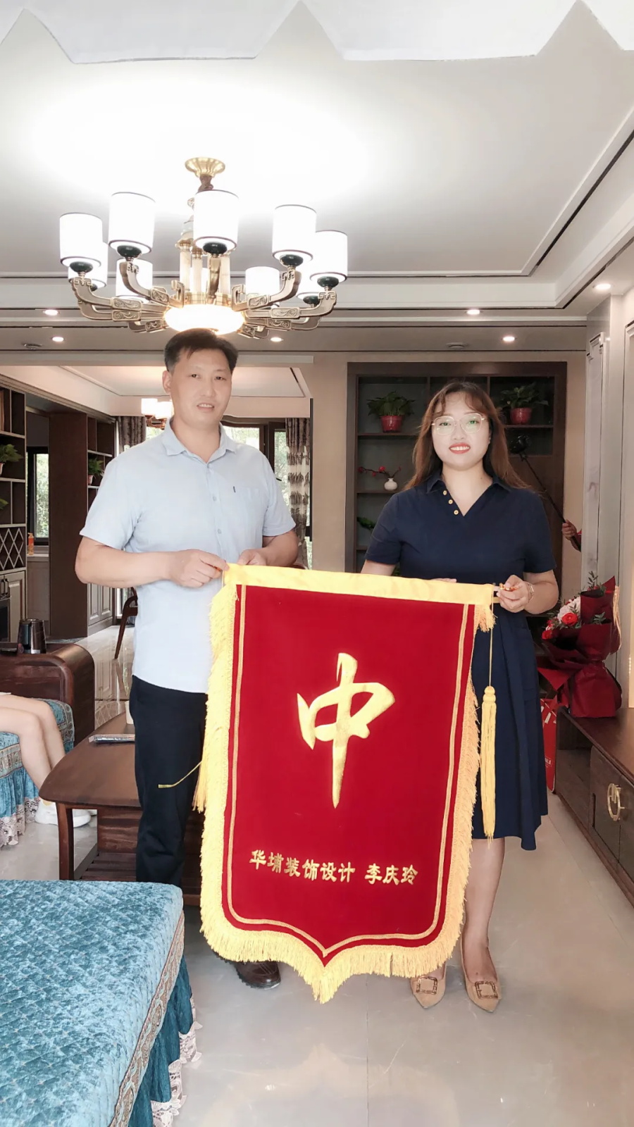相信大家一定看到了陽臺上隨風飄動的錦旗,一個大寫的“中”,是業(yè)主劉老師對設計師最地道的贊美,最河南化的評價。