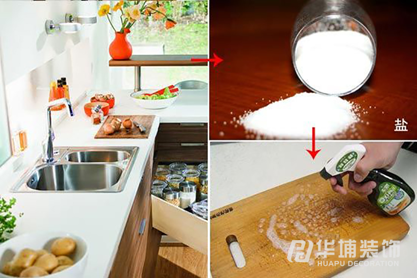 操作臺(tái)清潔:每次使用砧板后,都要用刀將板面的殘?jiān)蝺?,每?-7天在板面上撒一層鹽,起到殺菌和抗干裂的作用。操作臺(tái)也需要清洗干凈,再用干布擦干凈,切忌有積水。
