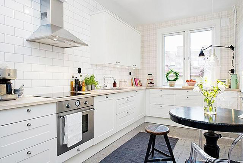 二是廚房面積小,或者是使用整體櫥柜的家庭,櫥柜高度和腰線高度都是差不多的80-90厘米,腰線剛好出現(xiàn)在櫥柜臺(tái)面上方不僅沒有裝飾作用還顯得凌亂。