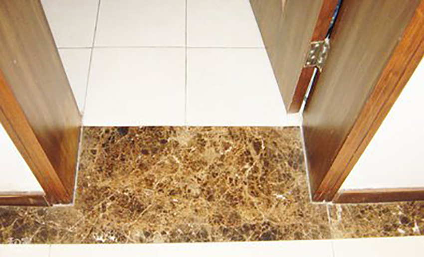 二、每條過門石都比較忌用兩條等分鋪設(shè),即使過門石有單中縫居中對室。也最好選用一塊完整的石材來做過門石。如果在過門石的石材幅面限制下,不能使用一整條的過門石,那么最好就分為三條過門石來鋪設(shè),先將過門石分一半,然后把余下一半再分兩半,在鋪設(shè)的時候,把過門石的兩小條在鋪設(shè)在兩側(cè),一半的大條在中間。