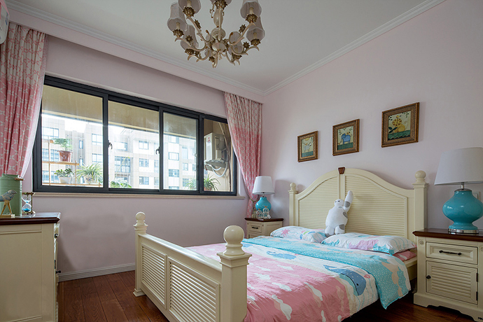 空間的整個六面體都是五彩且清淡的色彩呈現(xiàn),且以暖色調充斥,盡顯溫馨與迷人的幸福。