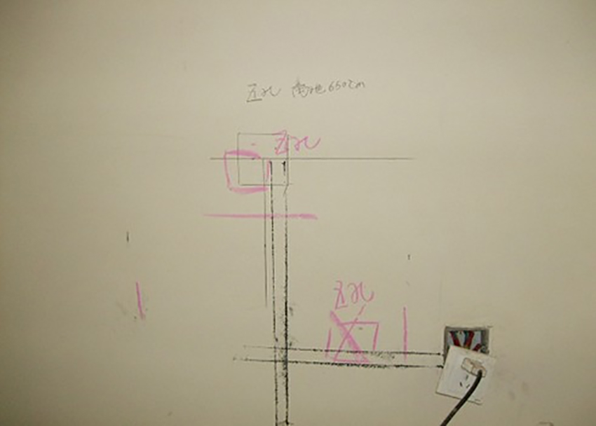 2. 劃線。確定線路終端插座,開關(guān),面板的位置,在墻面標(biāo)畫出準(zhǔn)確的位置和尺寸。