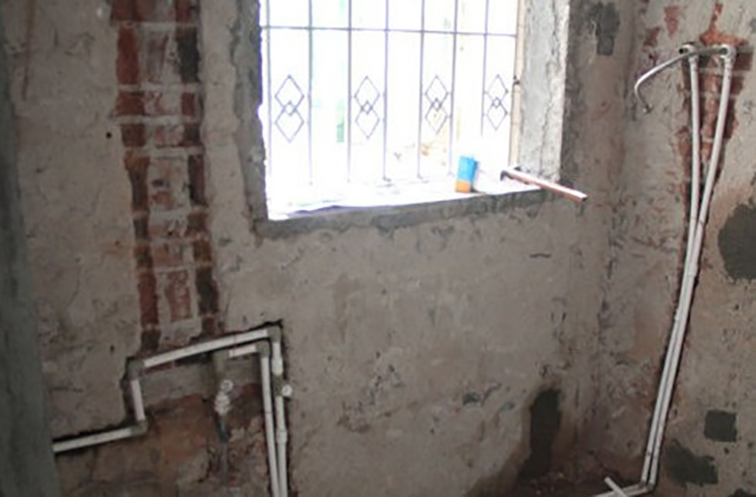 3、 通陽臺的水管,必須埋在原毛坯房的地面或墻面鑿深4cm的槽內(nèi),然后用水泥砂漿將槽口封平。