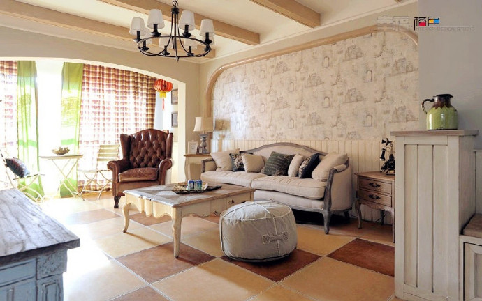 客廳,電視背景墻,陽臺(tái),田園風(fēng)