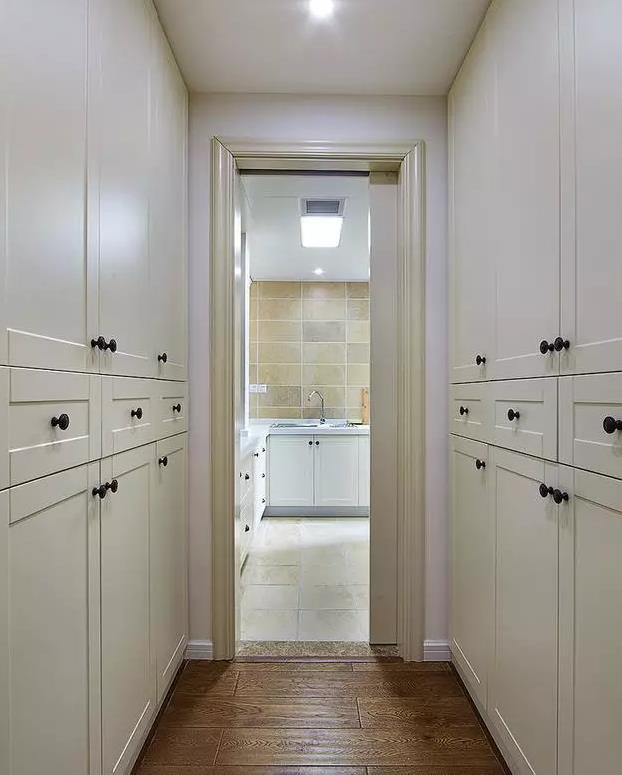 如果走廊比較狹窄的話,可以把墻體拿掉,當(dāng)然前提是非承重墻的墻體。把墻體拿掉后改造成收納,既擴大了面積又讓整個走廊顯得更有靈氣。有這么多大柜子何愁家里的東西放不下呢~