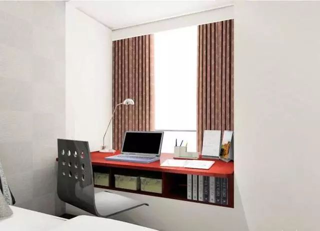 4、直接把飄窗改成書桌,下面做收納空間。優(yōu)點是采光比較好,空間利用合理。辦公學習累的時候可以看看外面,緩解疲勞。