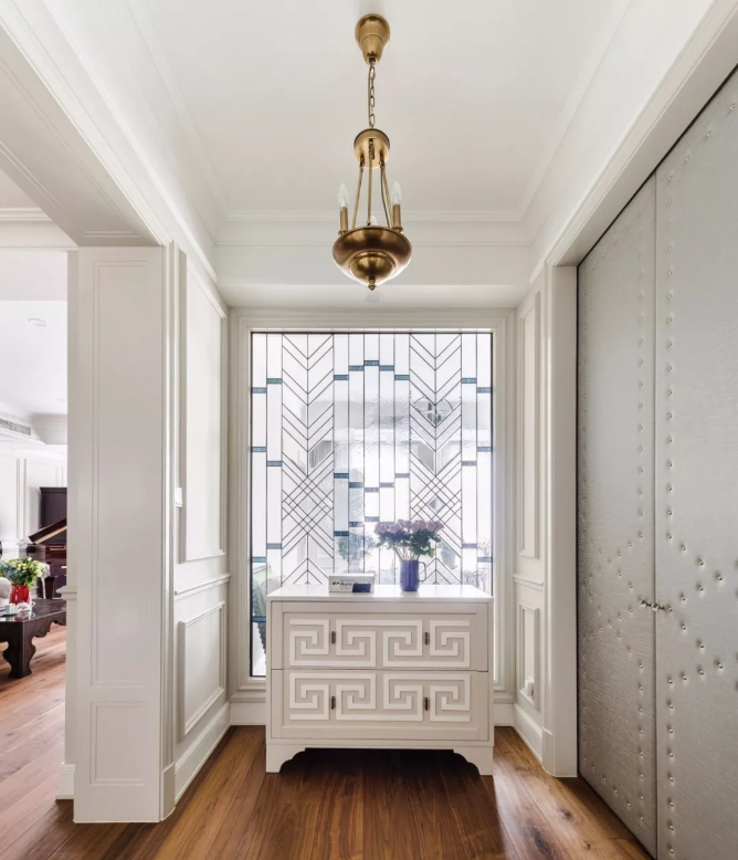 對于采光不佳的玄關(guān)來說,鏤空的定制柜是隔斷玄關(guān)和客廳的最佳選擇。不僅起到了遮擋和隔斷的作用,同時自然光線可以透過板層從客廳進入玄關(guān),補充不足的采光。