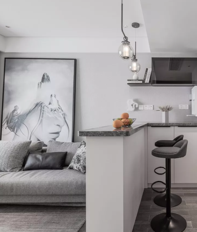 有些開放式餐廳也與客廳相連,做一個造型簡單大方的吧臺隔斷,或放置一個酒柜,也不失為一種經(jīng)濟實用的設(shè)計。