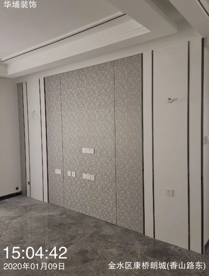 (3)墻面貼墻紙:正面1.5米處直視墻面,看是否無明顯接縫,側面無明顯翹邊(注意:驗收時只需在1.5米左右處直視即可,若是過近,接縫有痕跡屬正?,F象,因為有些拼接是不可避免的)。
